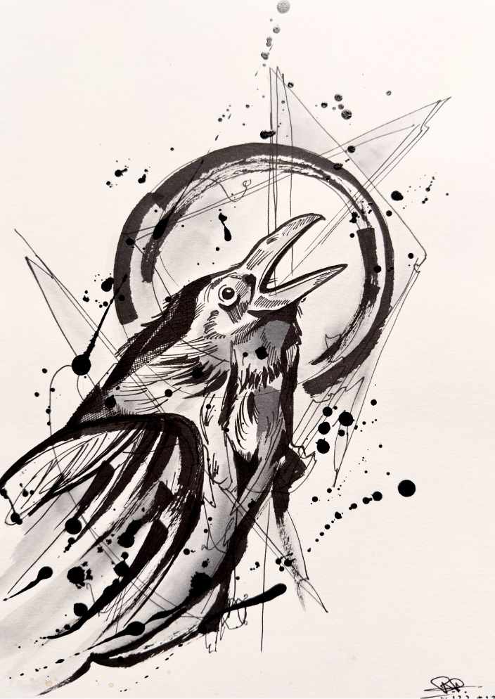 Dies ist ein handgezeichnetes Design. Du siehst hier ein Mix aus abstrakten, grafischen und realen Elementen. Ich mag die Kombination aus Struktur und Chaos. Es ist roh und fein gleichermaßen.