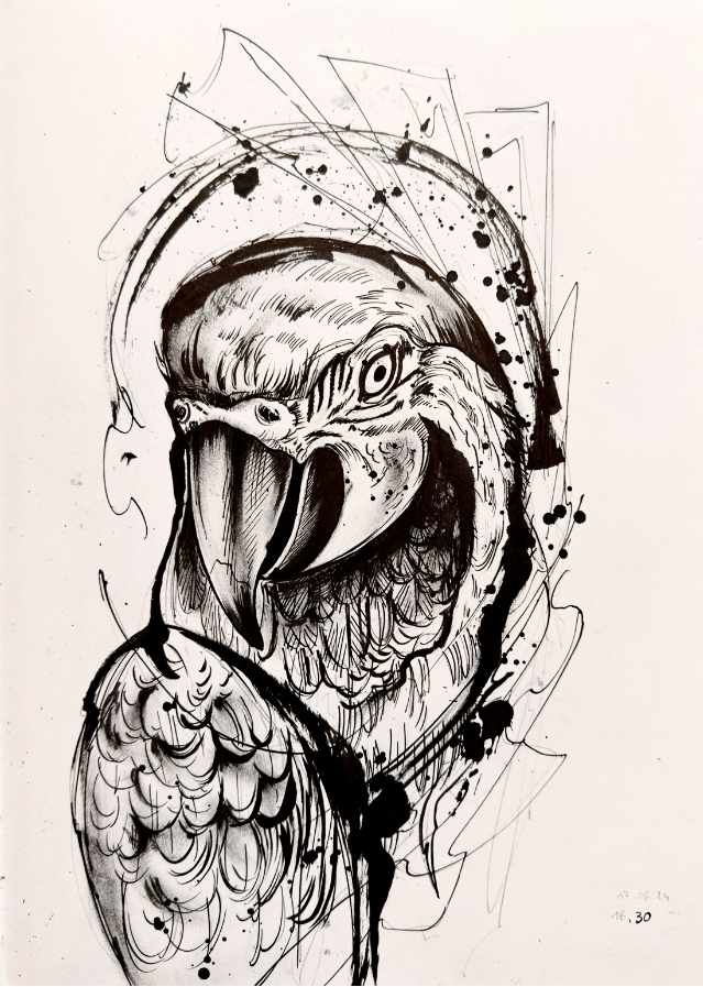 Dies ist ein handgezeichnetes Design. Du siehst hier ein Mix aus abstrakten, grafischen und realen Elementen. Ich mag die Kombination aus Struktur und Chaos. Es ist roh und fein gleichermaßen.
