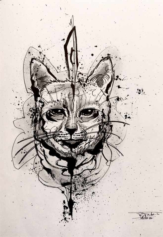 Dies ist ein handgezeichnetes Design. Du siehst hier ein Mix aus abstrakten, grafischen und realen Elementen. Ich mag die Kombination aus Struktur und Chaos. Es ist roh und fein gleichermaßen.