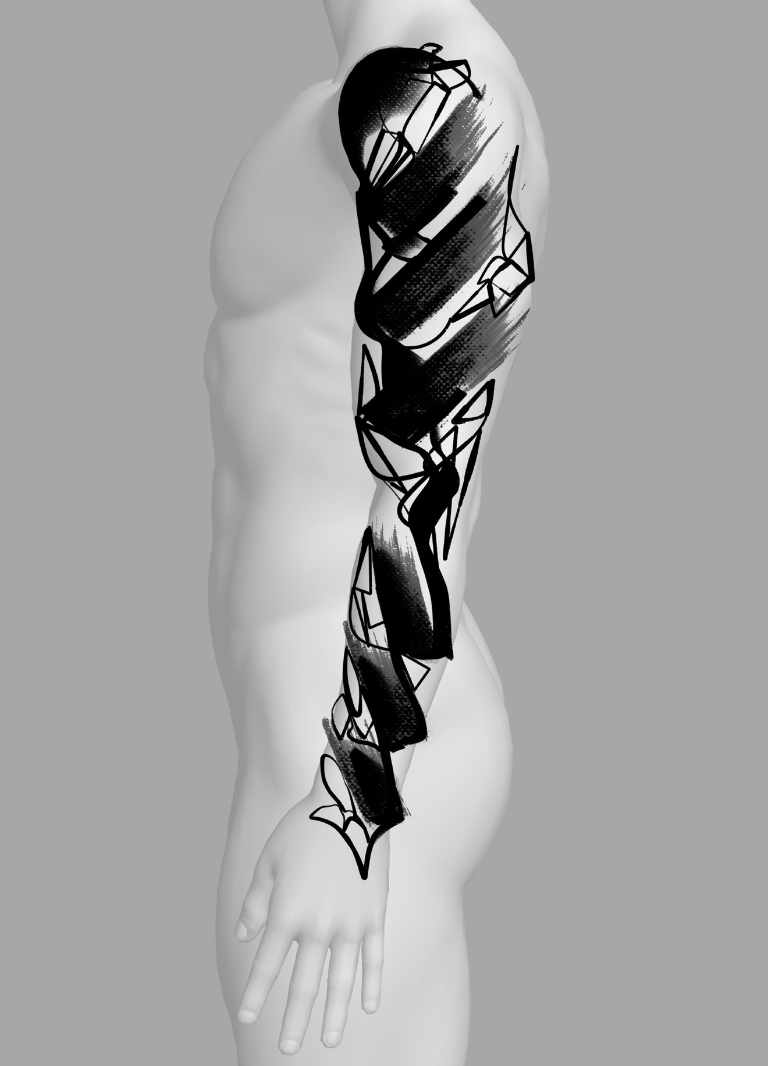 Dies ist ein handgezeichnetes Design. Du siehst hier ein Mix aus abstrakten, grafischen und realen Elementen. Ich mag die Kombination aus Struktur und Chaos. Es ist roh und fein gleichermaßen.